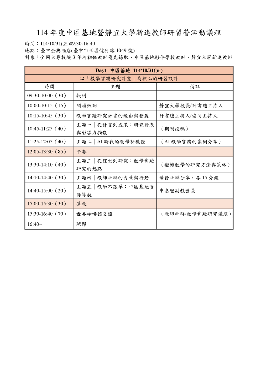 【中區基地-靜宜大學】114/10/31 教學實踐研究計畫中部區域基地新進教師研習營