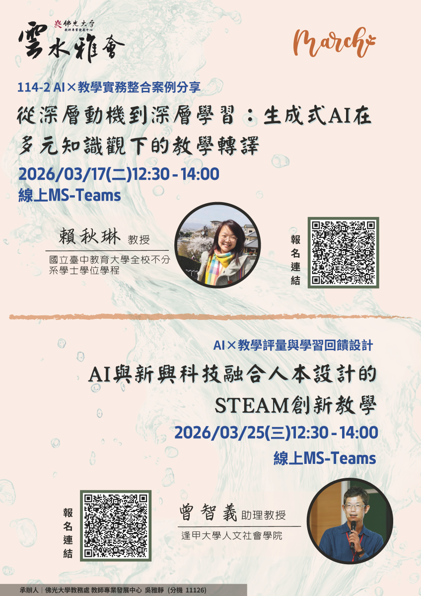 【東區基地-佛光大學】115年3月兩場線上教師知能研習活動資訊