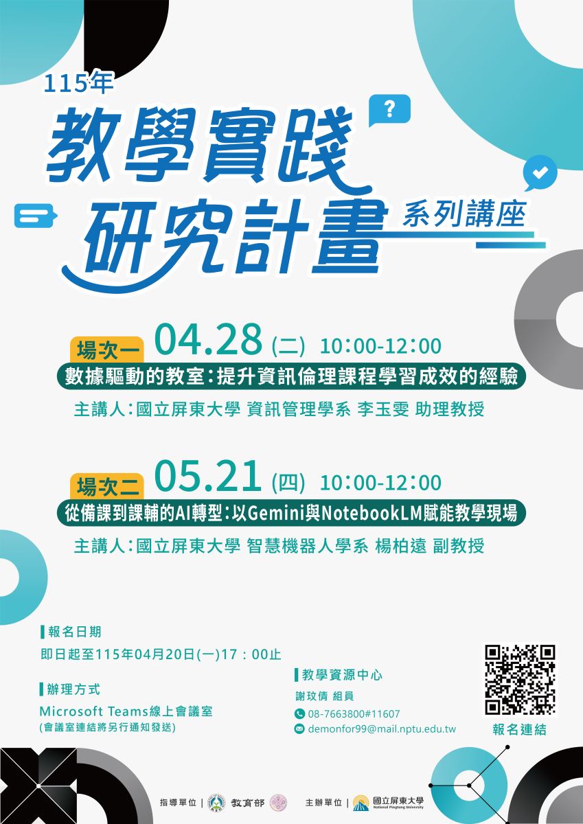 【國立屏東大學】「115年度教學實踐研究計畫線上講座」活動資訊