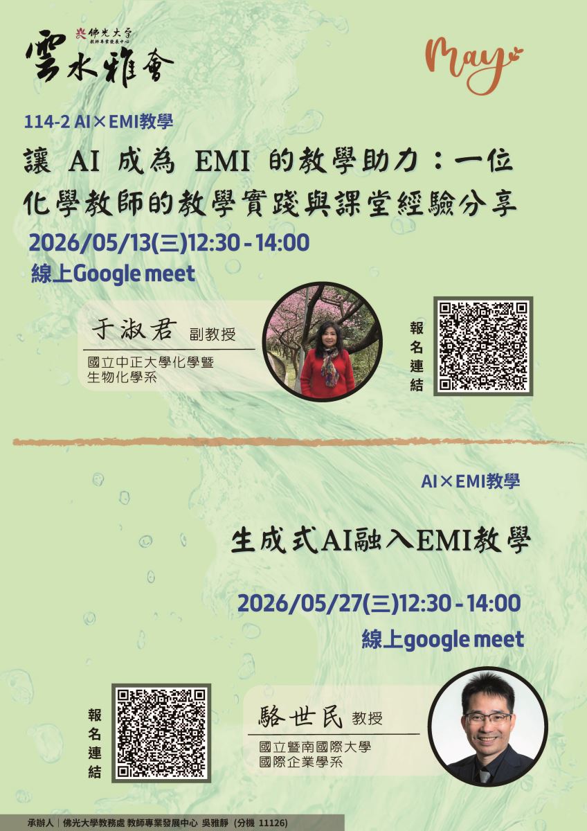 【東區基地-佛光大學】115年5月6月教師知能線上研習