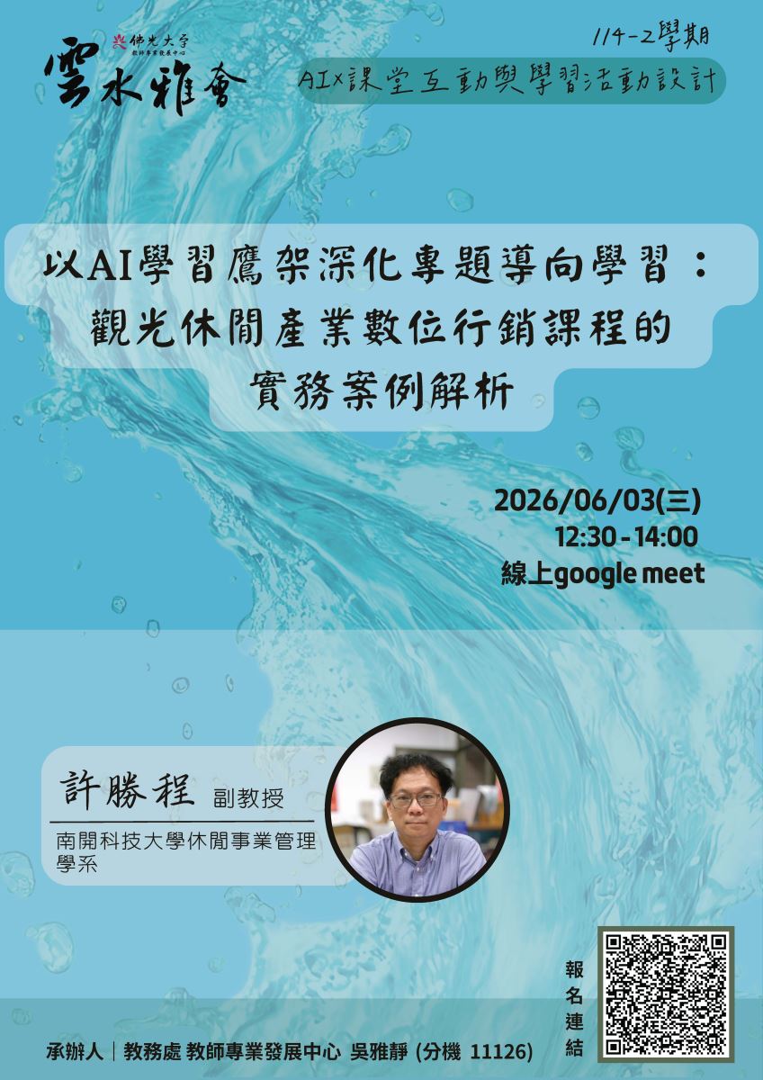 1.活動名稱:以AI學習鷹架深化專題導向學習:觀光休閒產業數位行銷課程的實務案例解析。